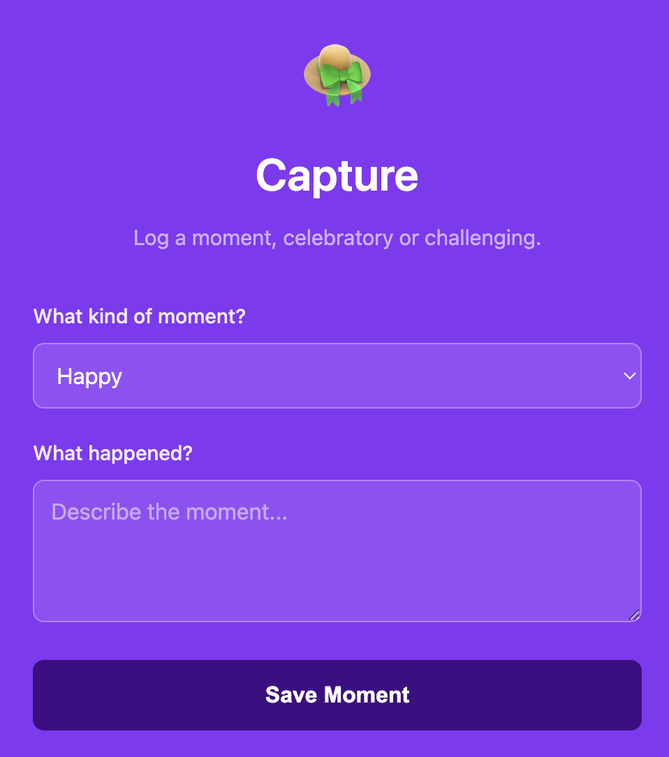 - Conversation-driven moment capture (no structured forms)